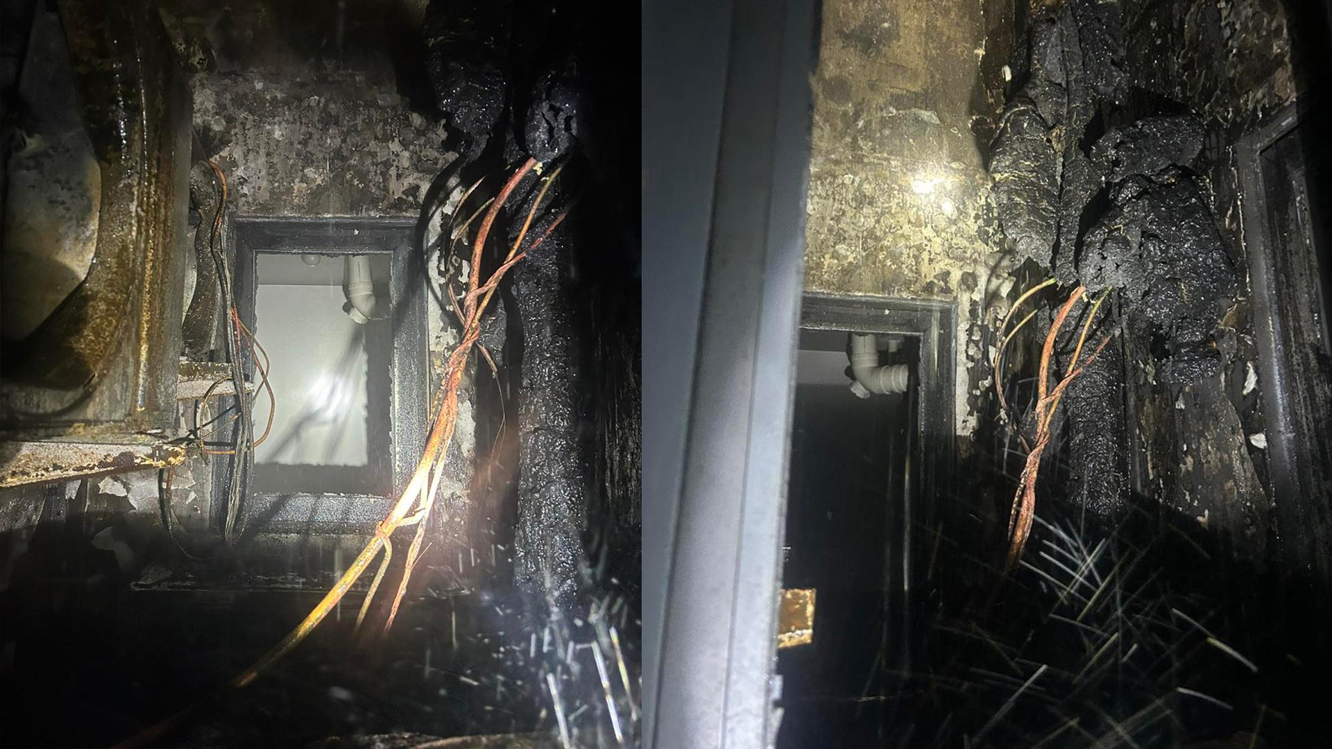 އަލިފާން ރޯވީ 5 ވަނަ ޓަވަރުގެ ފަސްވަނަ ފަންގިފިލާގެ ވައިގޮޅީގައި ހަރުކޮށްފައި ހުރި އޭސީ އައުޓްޑޯ ޔުނިޓެއްގައެވެ. އަލިފާން ރޯވި ސަބަބު އަދި ސާފު ނުވިނަމަވެސް އަލިފާނުގެ ސަބަބުން 6 ވަނަ ފަންގިފިލާއާއި 7 ވަނަ ފަންގިފިލާގެ 38 އެޕާޓްމަންޓަށް ގުޅާފައިވާ ނަރުދަމާ ހޮޅިތައްވަނީ އަނދާފައެވެ. އޭގެ ސަބަބުން އެ އެޕާޓްމަންޓްތަކުގެ ފާހާތައް އެއްގޮތަށްވެސް ބޭނުން ނުކުރެވެއެވެ.
