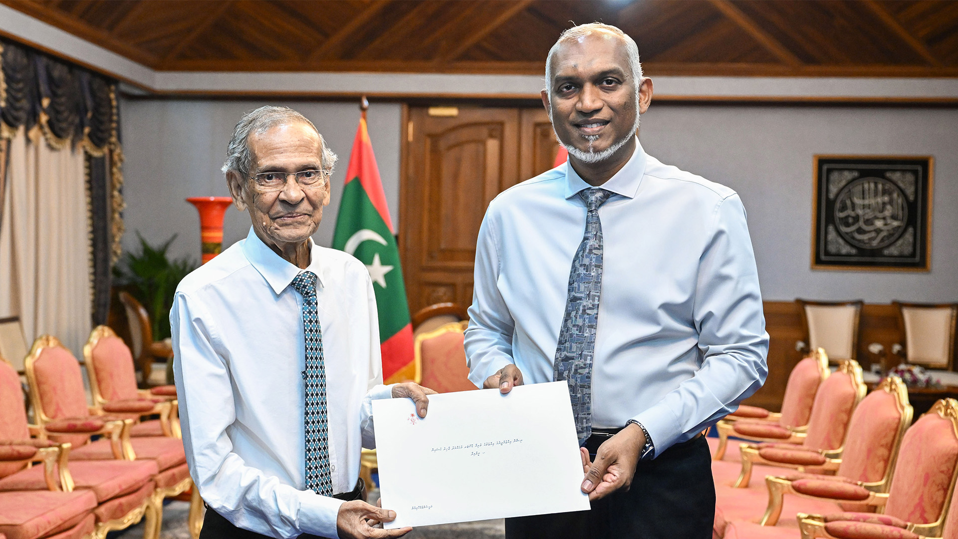 In recognition of his distinguished service, President Muizzu presented Dr Zahir with a letter of appreciation, noting his lasting impact on higher education during his time as Chancellor of both the Islamic University of Maldives and the Maldives National University, as well as his more than ten years as Minister of Education. His work in modernising the education system, integrating Maldivian values into curricula, and expanding Arabic-Islamic education nationwide was particularly acknowledged.